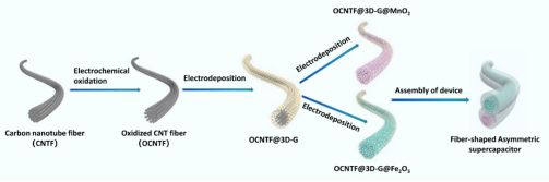 图纤维状柔性不对称超级电容器组装示意图