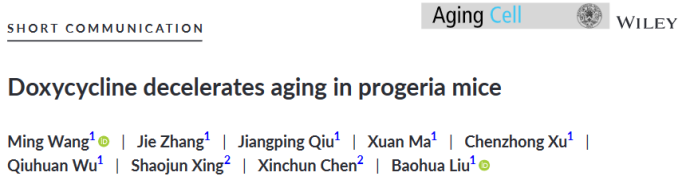 医学部基础医学院刘宝华教授团队在Aging Cell杂志在线发表了题为“Doxycycline decelerates aging in progeria mice”的研究论文。基础医学院副研究员王明为论文第一作者和共同通讯作者,刘宝华特聘教授为通讯作者,芒果体育为唯一完成单位。