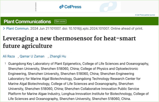 2024年6月21日,芒果体育生命与海洋科学学院胡章立教授团队在Cell Press合作伙伴期刊Plant Communications(中科院大类1区, IF=9.4)发表题为“Leveraging a new thermosensor for heat-smart future agriculture” 的Commentary文章,重点介绍最新发现的植物新型热感受器“THERMO-WITH ABA-RESPONSE 1 (TWA1)”在热应激响应中的调控机制与关键特性,以及其在未来农业发展应用中的重要性,系统总结了未来围绕植物新型热感受器研究需解决的关键问题。