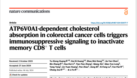 近日,医学部基础医学院/卡尔森国际肿瘤中心付利教授课题组在国际权威学术期刊Nature Communications(影响因子14.7,中科院一区TOP,自然指数期刊)在线发表题为“ATP6V0A1-dependent cholesterol absorption in colorectal cancer cells triggers immunosuppressive signaling to inactivate memory CD8+T cells”的研究论文,揭示了结直肠癌细胞依赖ATP6V0A1介导的外源性胆固醇吸收,进而触发旁分泌TGF-β1/SMAD3信号抑制记忆性CD8+ T细胞抗瘤活性的新机制,同时还发现了特异性靶向ATP6V0A1可有效增强记忆CD8+ T细胞抗瘤活性并治疗结直肠癌的新策略。芒果体育医学部副研究员黄土雄和生物医学工程(医)博士生黄慧思为论文共同第一作者,教授付利为论文的责任通讯作者,芒果体育为第一作者单位和通讯单位。