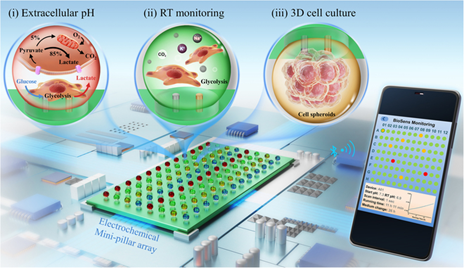 图8.用于原位监测细胞代谢过程的集成微型柱生物传感平台示意图