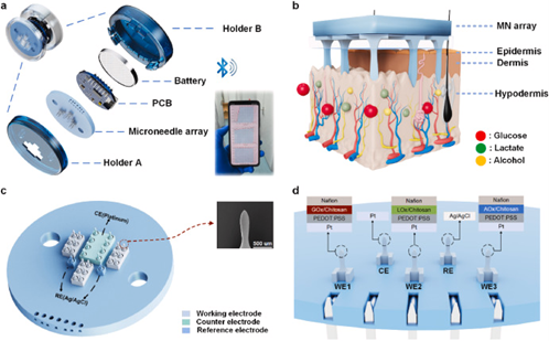 6. 用于多种健康生物标志物监测的可穿戴全集成微针阵列生物传感器