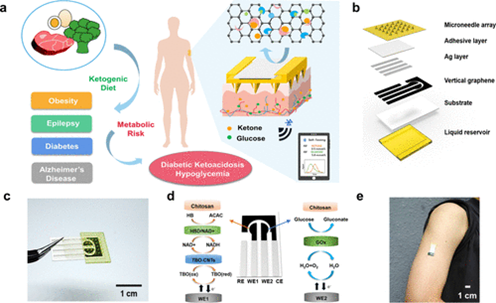 图10.实时生酮饮食管理的可穿戴微针生物传感器的示意图和图像