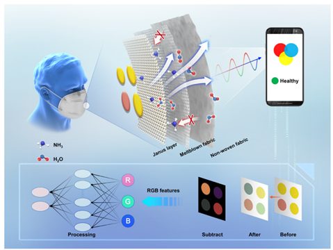 图4.可穿戴比色面罩用于呼吸氨检测示意图