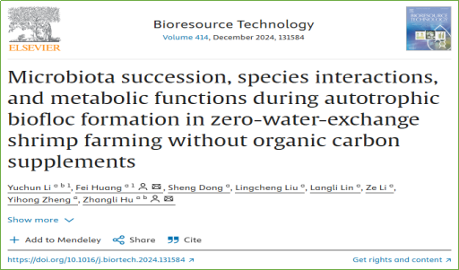 10月16日,芒果体育生命与海洋科学学院胡章立讲席教授团队在国际知名期刊Bioresource Technology(1区Top,影响因子=9.7)发表题为“Microbiota succession, species interactions, and metabolic functions during autotrophic biofloc formation in zero-water-exchange shrimp farming without organic carbon supplements”的研究论文。