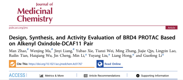 医学部李国锋助理教授在Journal of Medicinal Chemistry发表靶向蛋白质降解的高通量筛选研究成果