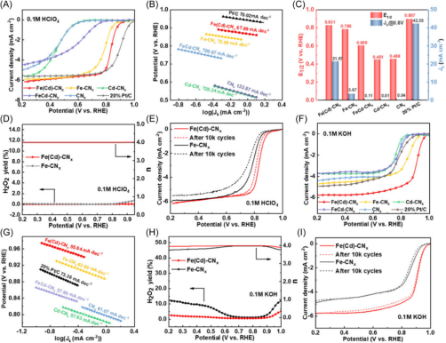 Fe(Cd)-CNx催化剂在酸性和碱性溶液中的电化学ORR性能