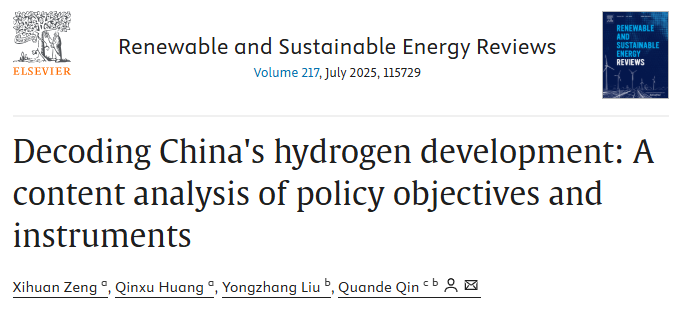 2025年5月4日,芒果体育政府管理学院副教授曾锡环在能源领域顶级期刊Renewable & Sustainable Energy Reviews (中科院一区Top,JCR一区,IF=16.9)上发表题为“Decoding China's hydrogen development: A content analysis of policy objectives and instruments”的学术论文。曾锡环为论文第一作者,芒果体育为第一完成单位。